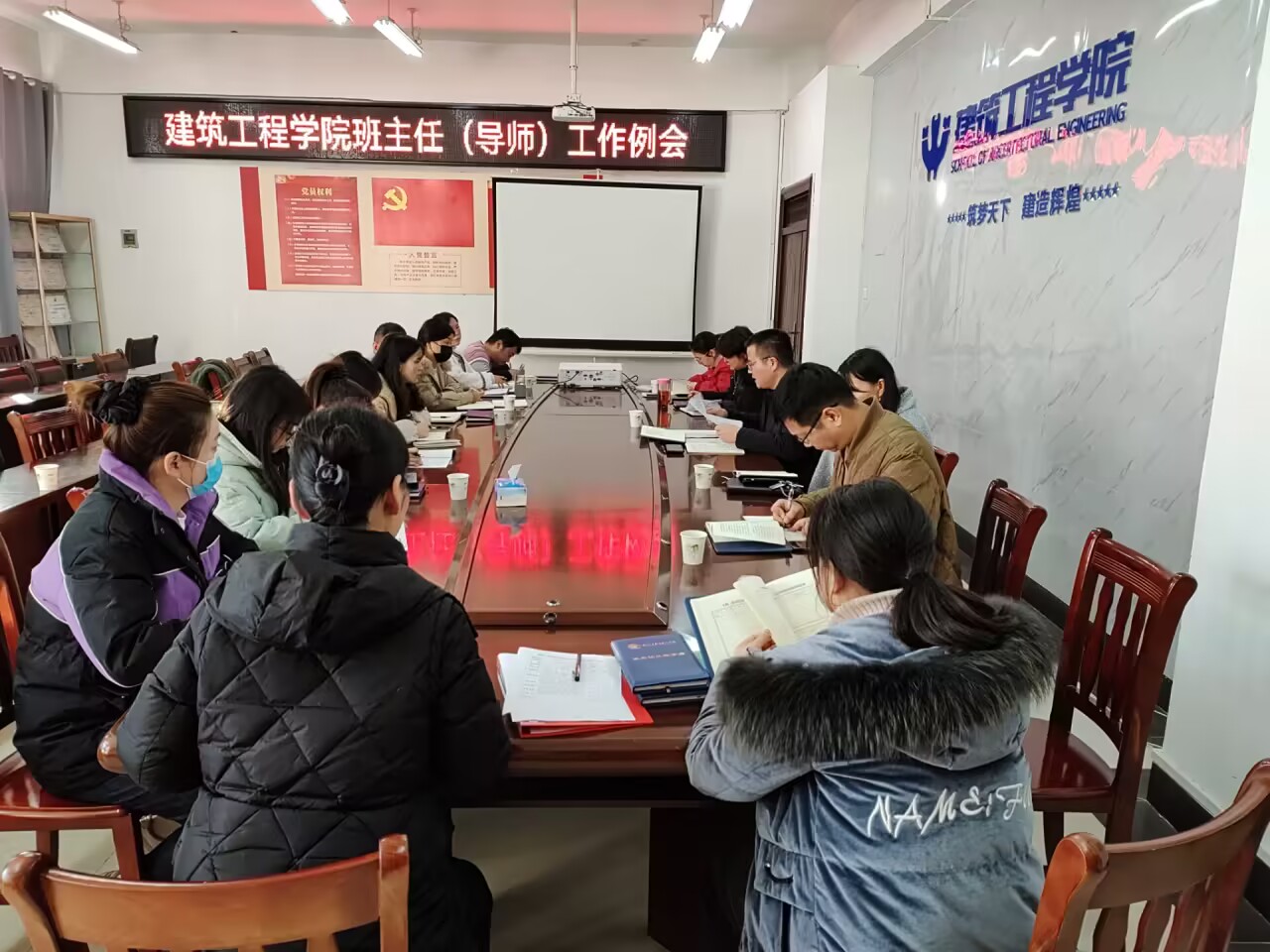王厚兵简单介绍了班主任(导师)工作职责、聘任选拔及考核办法。李季传达了公司对员工工作的最新要求并对学期末工作进行了安排和部署。提醒班主任(导师)做好“六个一”工作,要深入班级、了解员工具体情况,主动对接辅导员、用好班干部,建好重点人员台账,配合公司搞好“修身计划”,关心关注员工成长,加强家校沟通等。班级导师纷纷表示,感谢建工公司提供的工作平台,在今后的工作中,要积极了解员工学习状态,虚心学习员工管理经验,严格履行工作职责,创造性开展工作。