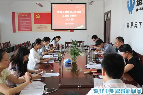 新闻网讯(通讯员严航 张伟)6月7日下午,建筑工程系教工党支部在系会议室召开6月份主题党日活动。教工支部全体党员参加了会议,会议由系教工支部书记严航主持。
