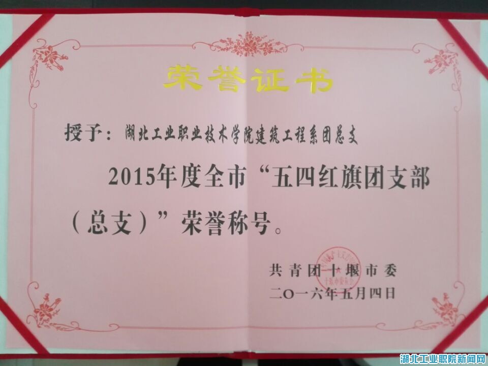 建筑工程系团总支被授予全市“五四红旗团总支”荣誉称号