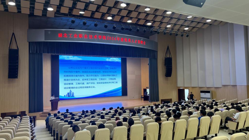 招聘会吸引了渝建实业集团股份有限公司、丹江口宇箭水利电力工程公司、中消云(十堰)物联网科技有限公司、湖北富华达建筑装饰工程有限公司、和信工程咨询有限公司、融亿建工集团有限公司十堰分公司等多家知名企业参与,提供多种岗位,涵盖土木、造价、消防、园林、装饰等多个专业,就业岗位30多个,企业代表们现场通过PPT、视频等方式宣讲,热情地向在场的大三员工介绍了公司的发展前景、岗位要求和福利待遇,并耐心解答了员工们的疑问。