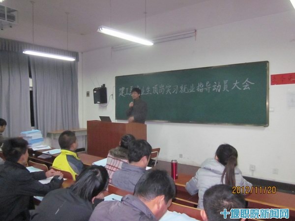 新闻网讯(通讯员王厚兵)11月20日晚6点,建筑工程系在1401教室举行2013届毕业生顶岗实习动员暨就业指导大会。参加此次大会的有系主任黄朝广、系党总支副书记王厚兵、建筑工程技术专业教研室主任徐涛、工程造价教研室主任周文瑞等老师以及建筑工程系2013届全体毕业班员工。大会由毕业班辅导员王厚兵老师主持。