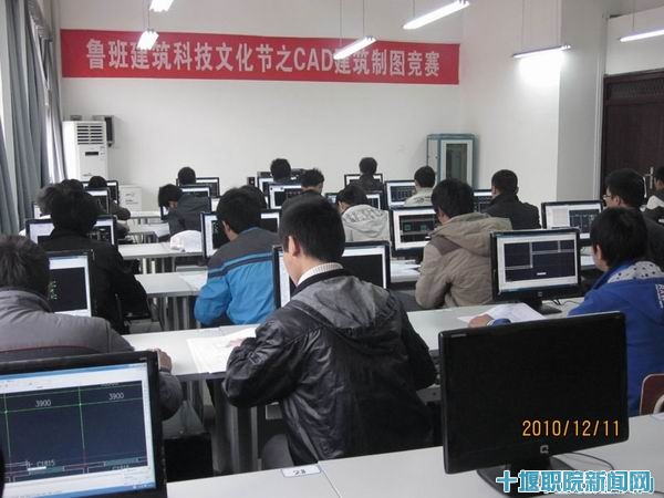 新闻网讯2010年12月11日上午,作为建筑工程系第一届鲁班建筑科技文化节系列活动之一的建筑CAD绘图竞赛在科技楼1405室举行,55名同学参加了比赛。本次CAD制图比赛的主题是“知识与能力并重,彰显建筑特色”,强调专业知识和计算机绘图能力的结合。比赛试题由湖北省中江建筑设计院和建筑工程系专业老师统一命题,着重考察员工制图操作的熟练度和准确性。在三个小时的比赛时间里,同学们专心致志,现场秩序井然有序。