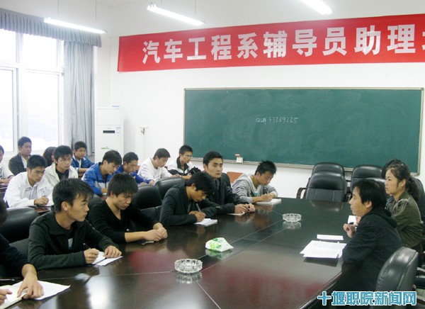 新闻网讯10月12日下午,汽车工程系开展2011级辅导员助理培训工作。院学工处长王哲,汽车工程系党总支副书记梁军萍,建筑工程系党总支副书记王厚兵以及该系30名辅导员助理参加了此次活动。