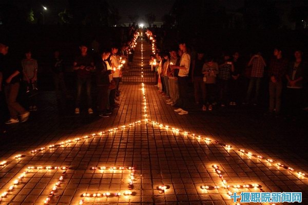 当晚,上百名公司学子不约而同齐聚老员工活动中心,他们手捧装着蜡烛的玻璃杯,明亮的烛光在杯中跳跃,如同一颗颗火热的心。随后,大家将400多枝蜡烛摆出一颗巨大的心,和代表地震发生的日期4.20。同时,从老员工活动中心开始沿着公司的中轴线,蜡烛也摆出一条长路,象征着将公司师生的爱心传递出去,传递给雅安地震灾区的人民。随着全场蜡烛的点亮,大家都默默地低下头,为地震中逝去的人们默哀,从内心里为雅安人民祝福,希望灾区的人们平安,希望他们早日从灾难中恢复过来。许多人都留下了眼泪。