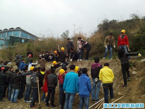 本次所听课程是施戈亮老师的地下施工组织与管理,教师先在教室给各个小组分配了任务,介绍了操作流程和注意事项等,然后带领员工在校内一户外场所组织实施。员工们按照事先分配好的任务,分工协作,有序展开。两节课的时候,扎网、钻孔等学习任务在大家的积极参与和配合下已基本到位。