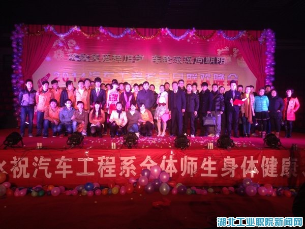 新闻网讯12月27日晚,汽车工程系2014元旦文艺晚会于院体育馆精彩上演。公司党委书记顾善远,经理魏文芳、经理助理郑强、学工处处长王哲,校企合作处长郑妍妍,后勤集团总经理刘堰兵以及兄弟系部领导莅临现场,与汽车工程系全体教职工一起,共同欣赏晚会。