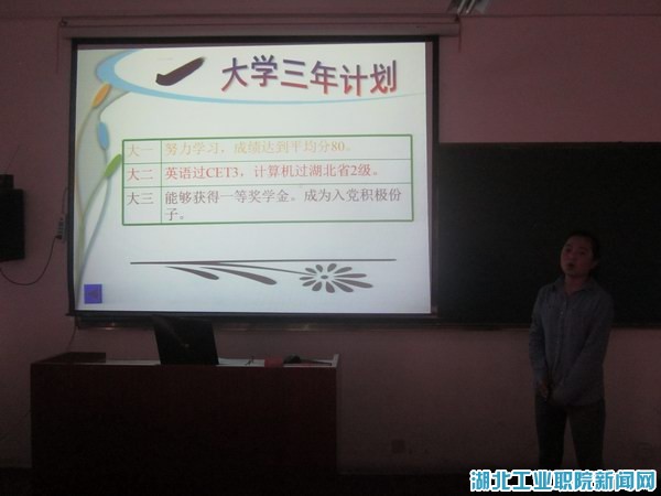 本次决赛12名参赛选手由半个月前的预赛选手中选拔而出。依旧是以PPT演示结合自身演讲的方式,从自我评价、环境评价、职业目标路径分析三个方面剖析自己,认识到自身的优点和不足之处,对自己就读的专业作一定程度的分析,并对自己目前的老员工涯乃至今后五年或十年内进行初步的职业规划。选手们精彩流利的的演讲赢得了现场观众们的阵阵掌声。