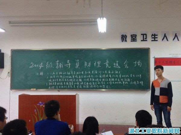 竞选中主要考查辅导员助理应当具备的素质和能力,早晚自习存在的问题及解决措施,如何处理学习、工作、班级事务之间的关系。这些问题都非常贴近辅导员助理的实际工作,要求竞聘者具备一定的班级管理经验。竞聘者们积极主动,回答问题大方得体,充分展现了积极向上的工作态度和良好的精神面貌。竞选会后,该系将结合竞聘者的平时工作表现、综合素质等情况最终确定12名2014级辅导员助理。