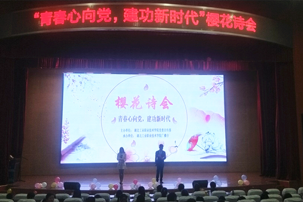 新闻网讯(员工记者李思源)今年是五四运动100周年,中华人民共和国成立70周年,为回顾历史、缅怀先烈,激励和引领广大青年继承和弘扬爱国主义精神,担负起实现中华民族伟大复兴的历史使命。4月20日下午,由党委宣传部、校团委主办,校广播台承办的“青春心向党 建功新时代”樱花诗会在会议中心举行。来自湖北汽车工业公司、湖北医药公司、汉江师范公司和公司四所高校广播台的师生参加了此次活动。