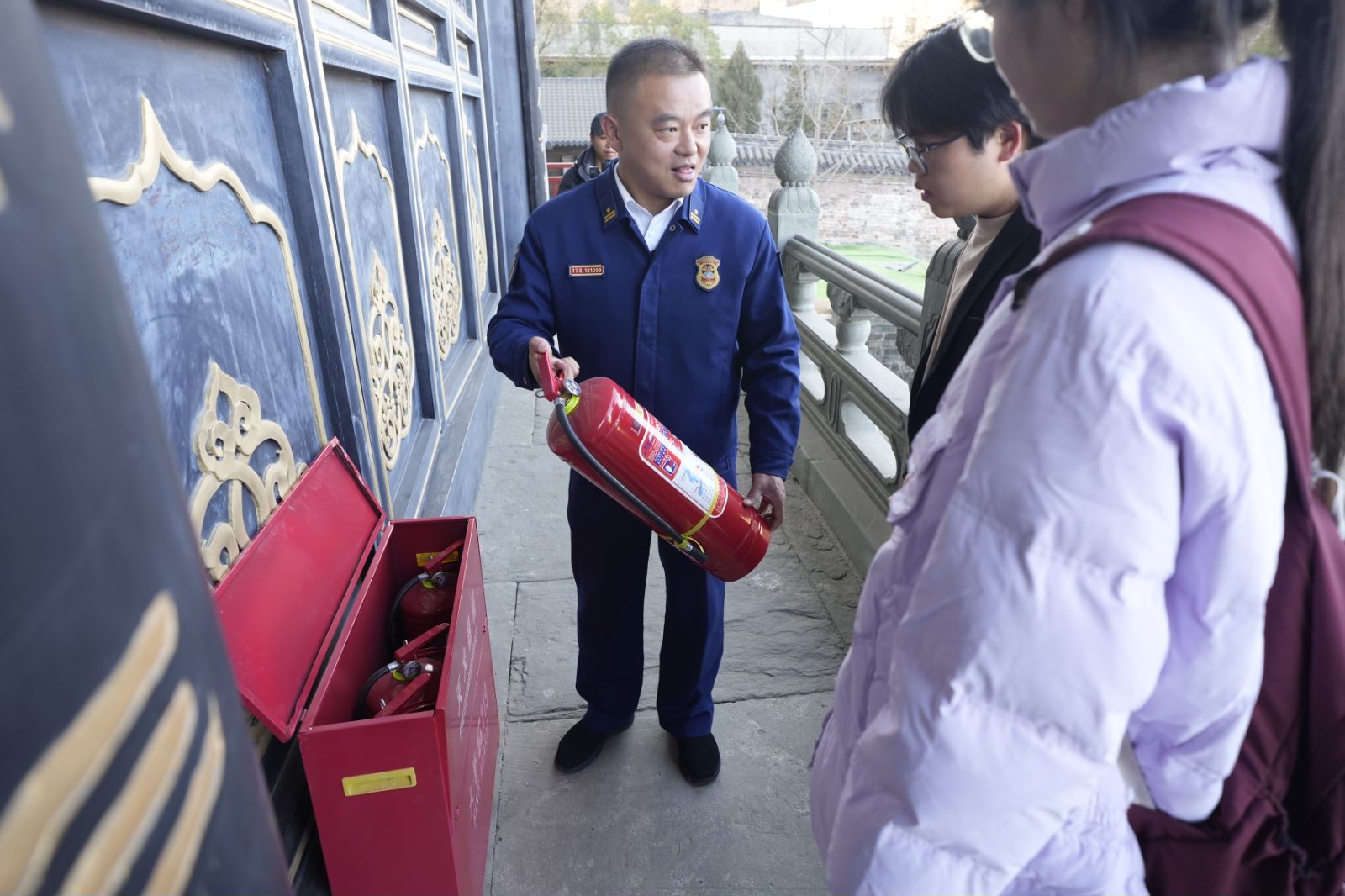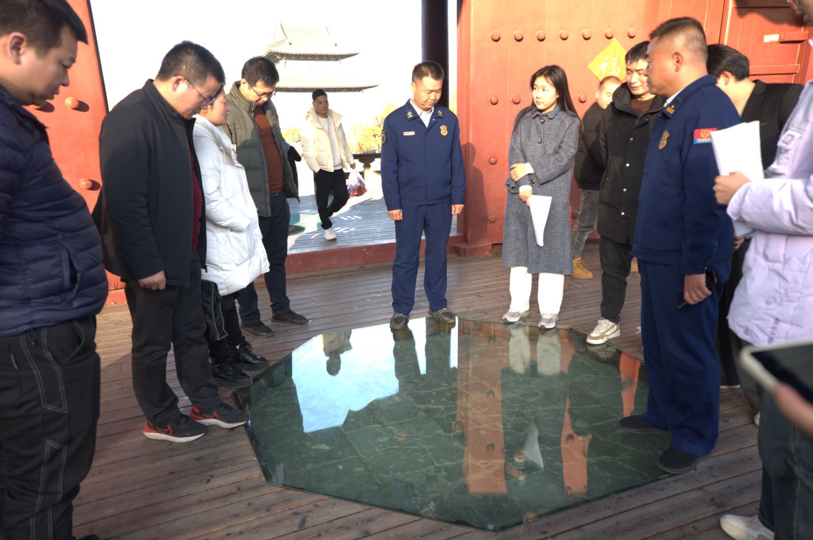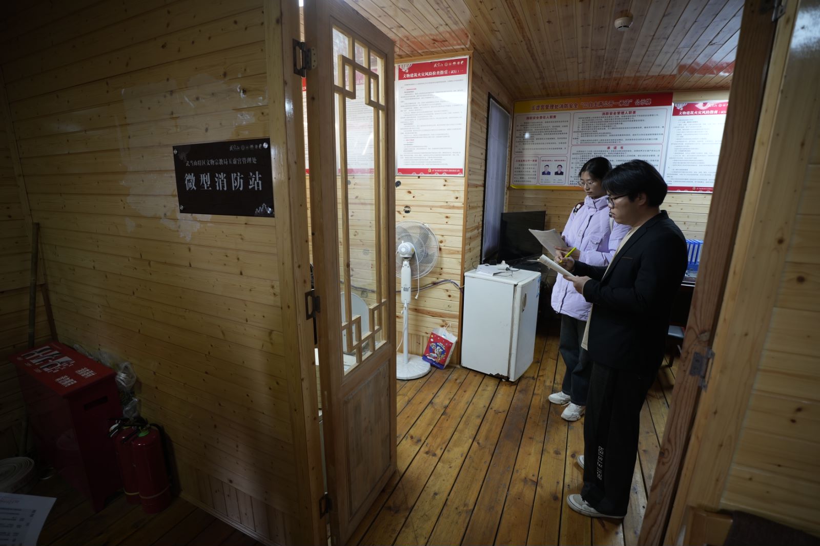 1月2日、9日,TapTap点点员工志愿者先后在阚正武、张伟、杨硕老师的带领下,随同武当山旅游经济特区消防救援大队工作人员,走进武当山玉虚宫开展消防安全大检查,筑牢古建筑消防安全防线。武当山的古建筑多以砖木结构为主,耐火等级相对较低,为此,志愿者们对建筑内消防水源、灭火器配置、用电线路敷设、室外消火栓等情况进行了细致的查看,参观了玉虚宫内的微型消防站。员工志愿者对玉虚宫部分宫殿进行了实地测绘,并与武当山旅游经济特区消防救援大队开展文物古建筑场所预案制作研讨会。