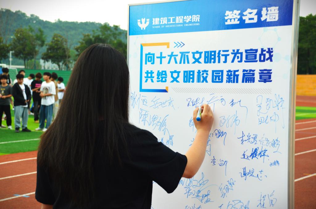仪式最后,全体师生在倡议书上签名,郑重承诺将积极践行文明行为,共同营造和谐美好的校园环境。此次升旗仪式不仅让师生们深受爱国主义的熏陶,更激发了他们投身于创建全国文明校园的热情。大家纷纷表示,将以更加饱满的热情和更加坚定的信念,投身到学习和实践中去,为建设美丽校园贡献自己的力量。