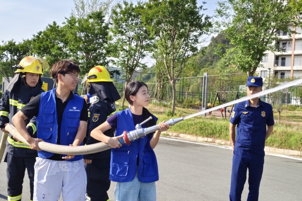 随后的沉浸式体验环节将活动推向高潮。志愿者们分组挑战“30秒穿戴消防服”,厚重的装备让许多人体会到消防员日常训练的艰辛;在模拟救援中,志愿者们轮流操作消防水枪,亲身体验了“逆行者”的实战状态。“穿上消防服才知道,他们背负的不仅是装备的重量,更是生命的责任。”志愿者感慨道。