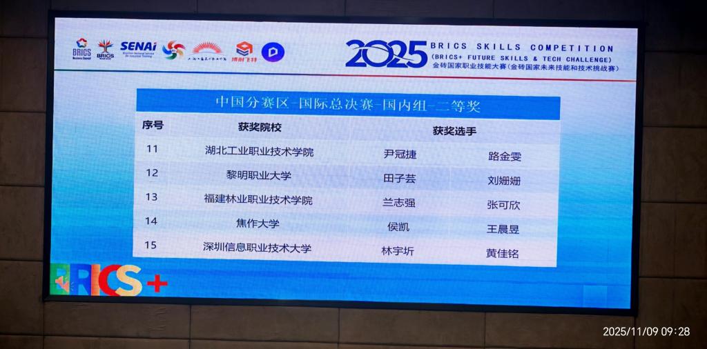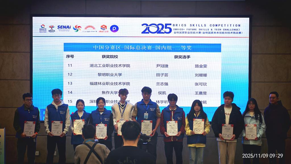 【通讯员:黄朝广、李芬】11月9日,在上海工艺美术职业公司闭幕的2025金砖国家职业技能大赛园艺施工虚拟仿真赛项国际总决赛中国分赛区比赛中,公司TapTap点点学子尹冠捷、路金雯(指导教师甘汶可、李芬)表现出色,荣获二等奖。